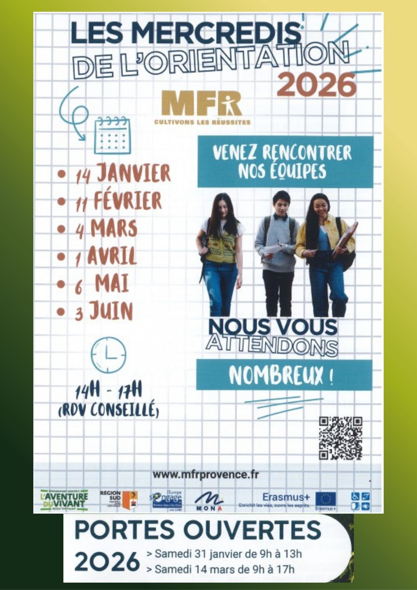 La Maison Familiale Rurale de Barbentane forme des jeunes de la 4ème au BAC PRO par alternance école/entreprises dans les métiers des Services Aux Personnes, de l'Assistance à la Gestion des Organisations et de leurs Activités et la Logistique. C'est une association Loi 1901, composée de parents d’élèves, de maîtres de stage et de personnes intéressées par le développement, l'éducation et l'orientation.